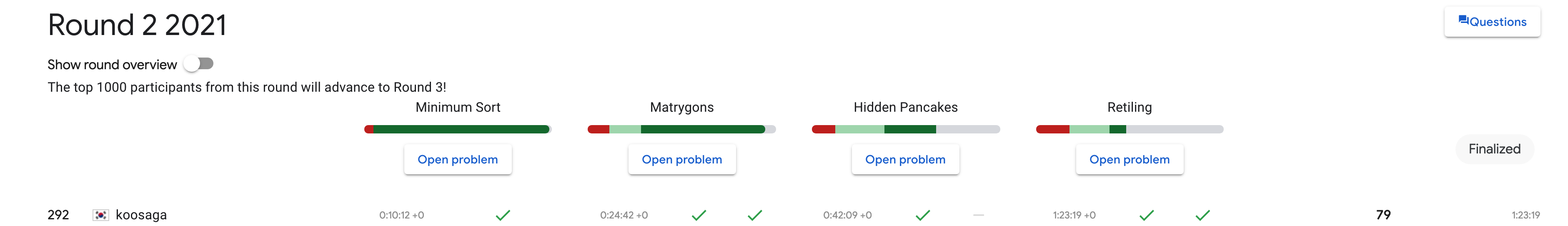 Rank 292 / 79 points. 1000등 안에 들어서 다음 라운드 진출했다.
