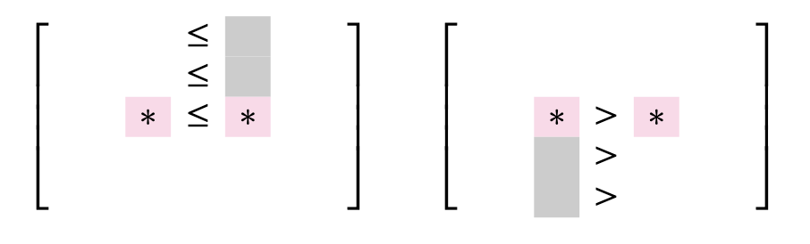 Let's further proceed with this information. We scan each column from left to right. For each column, we compare it's entries in the first row. We either have