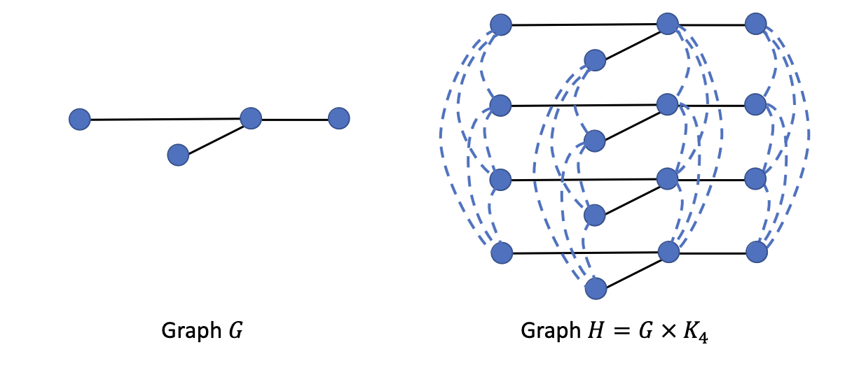 Proof. 그래프 $G$ 가 주어졌을 때, $G$ 를 $(\Delta + 1)$ 번 복사하고, 각 정점 $i$ 에 대해서 $(\Delta+1)$ 개의 복사본을 클리크로 묶는다. 아래 사진을 참고하라: