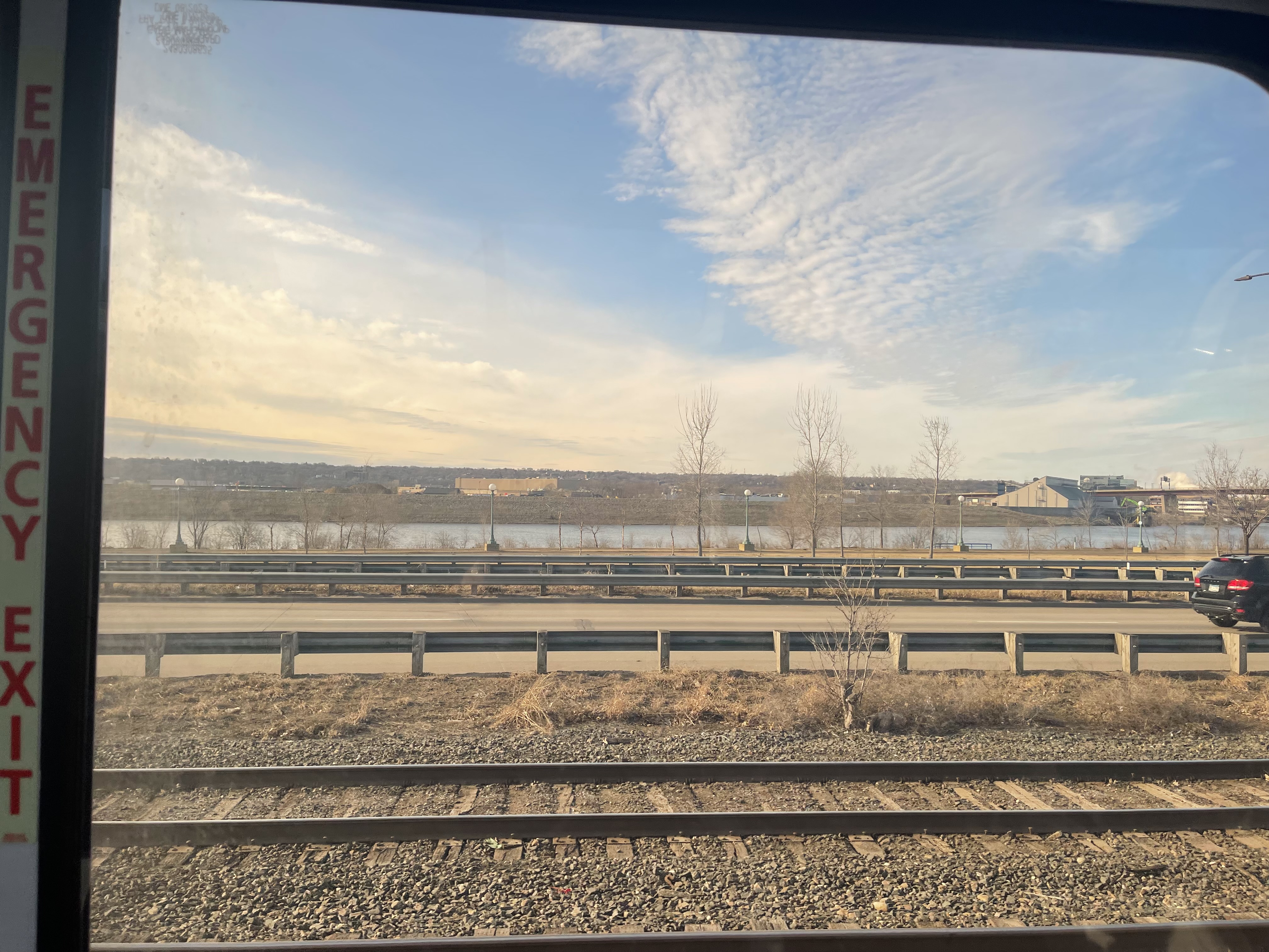 기차는 세인트 폴 - 미네아폴리스에서 30분 이상 길게 정차한다. 창밖으로 미시시피 강이 쏟아지는 멋진 풍경의 역이었다. 밖에 나가서 더 좋은 사진을 찍고 싶었으나, 기차 밖으로 나가면 기차가 강을 가리고 있어서 (...) 그럴 수는 없었다.