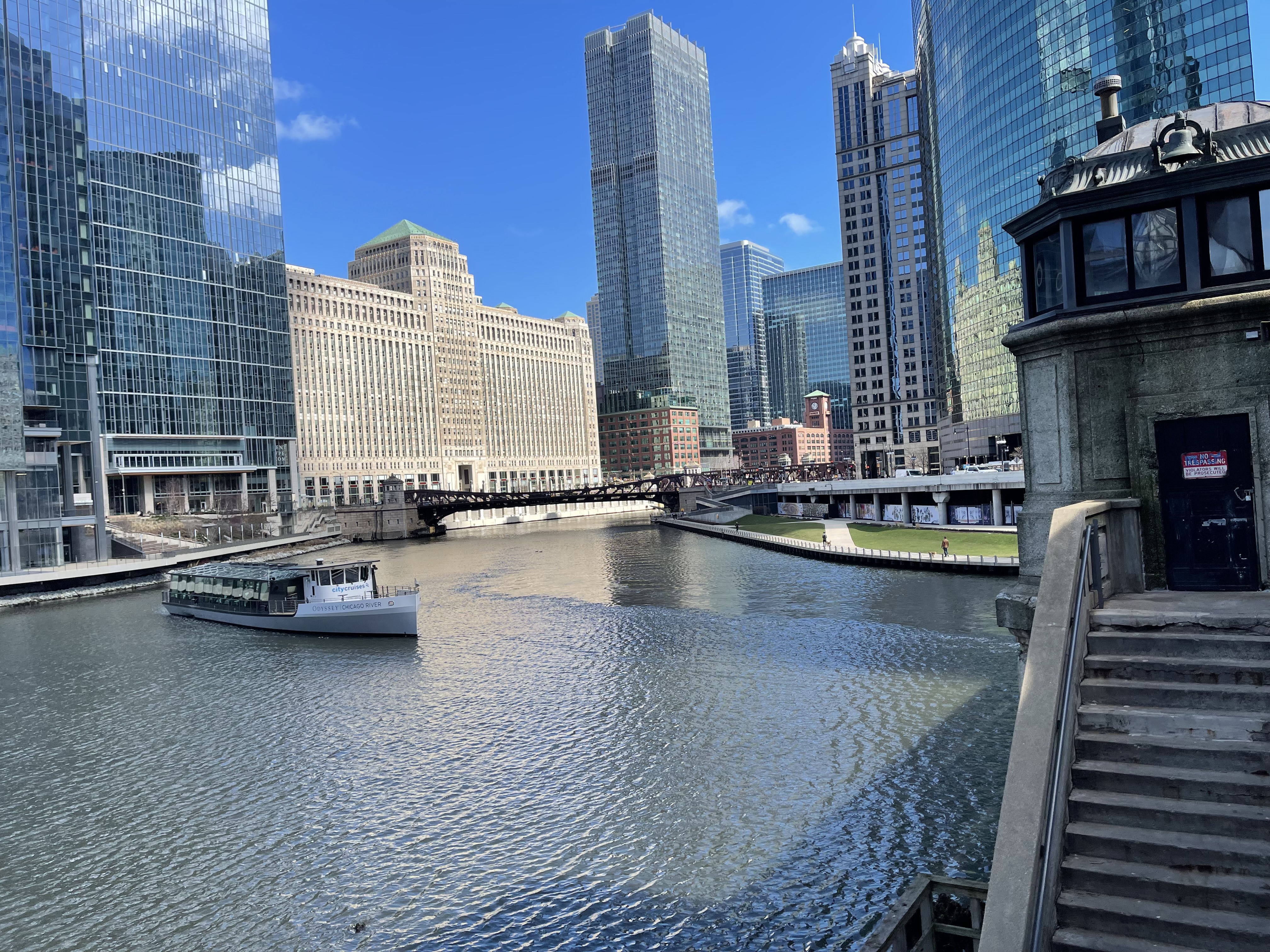 Downtown의 "정말 중심" 에 오면 시카고 강을 따라 산책로가 있다. 물 색깔도 다른 걸 보면 여기는 관리를 하는 것 같다.
