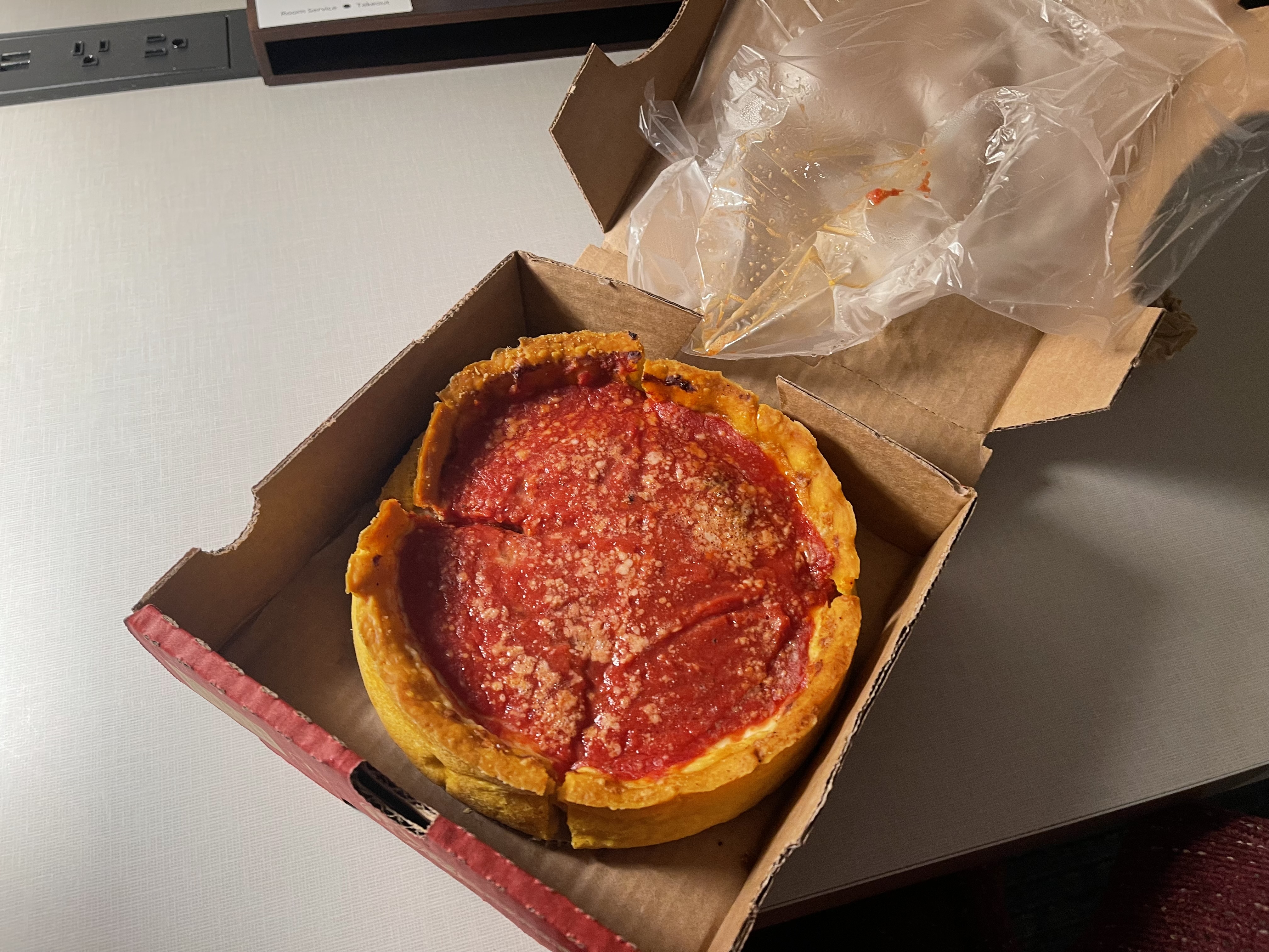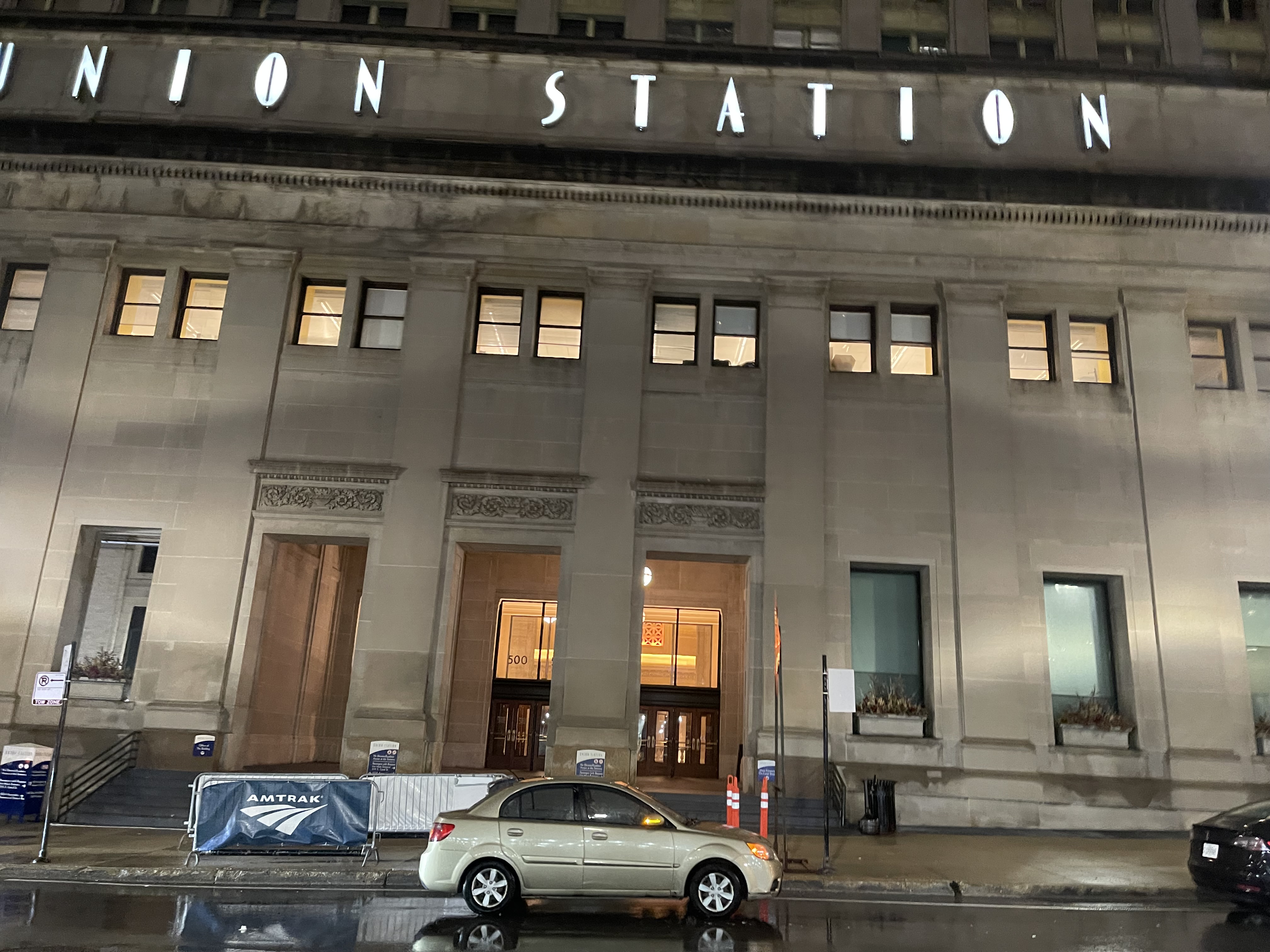 호텔에 도착한 후 너무 피곤해서 낮잠을 살짝 자고, 한 9시쯤에 피자를 시켜놓고 pickup하러 호텔 밖으로 나왔다. 앞서의 먹구름을 빠져나오지 못했기에, 시카고에는 비가 살짝 오고 있었다. 사진은 아까 내렸던 Union Station. 우산하고 피자 들면서 겨우 찍은 사진이다.