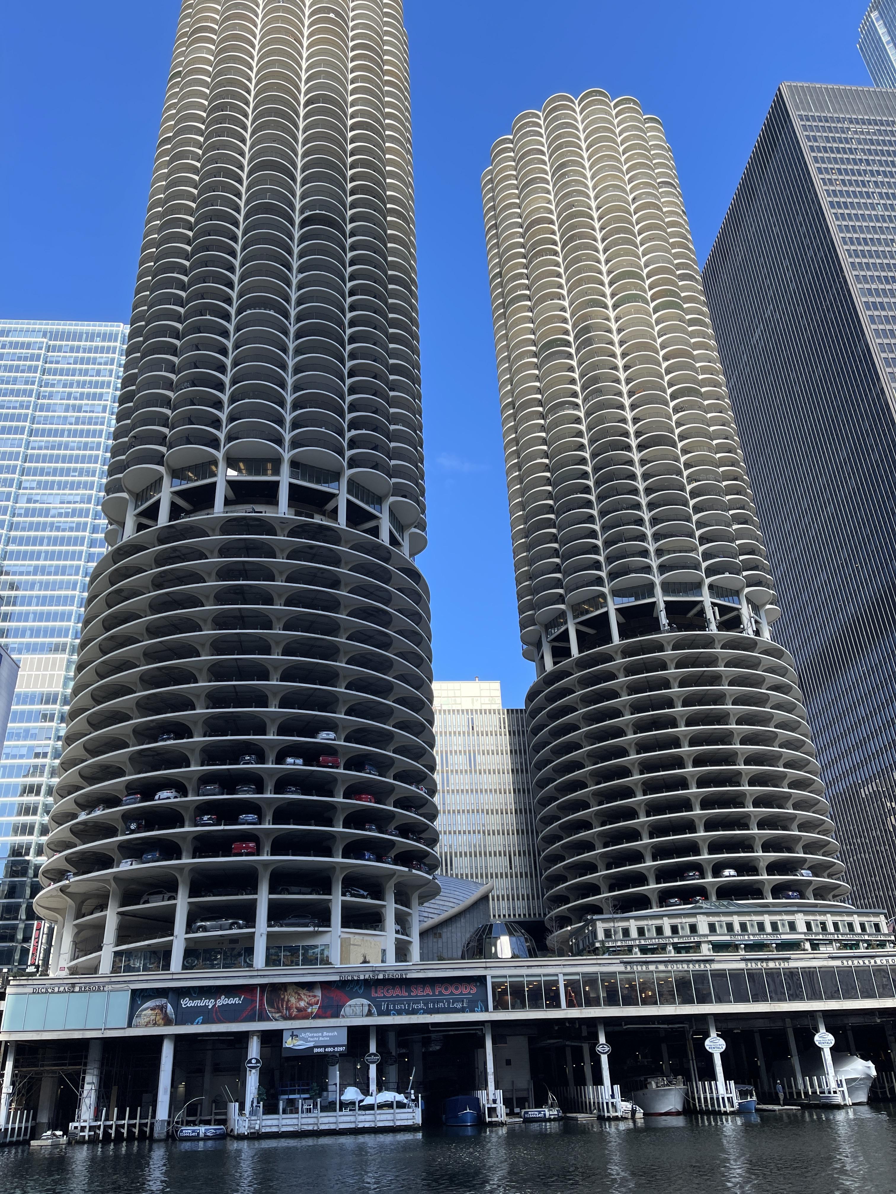 Marina City Chicago, 로컬들은 Corn Tower라고 부르는 것 같다. Yankee Hotel Foxtrot 때문에 아주 잘 알고 있다.